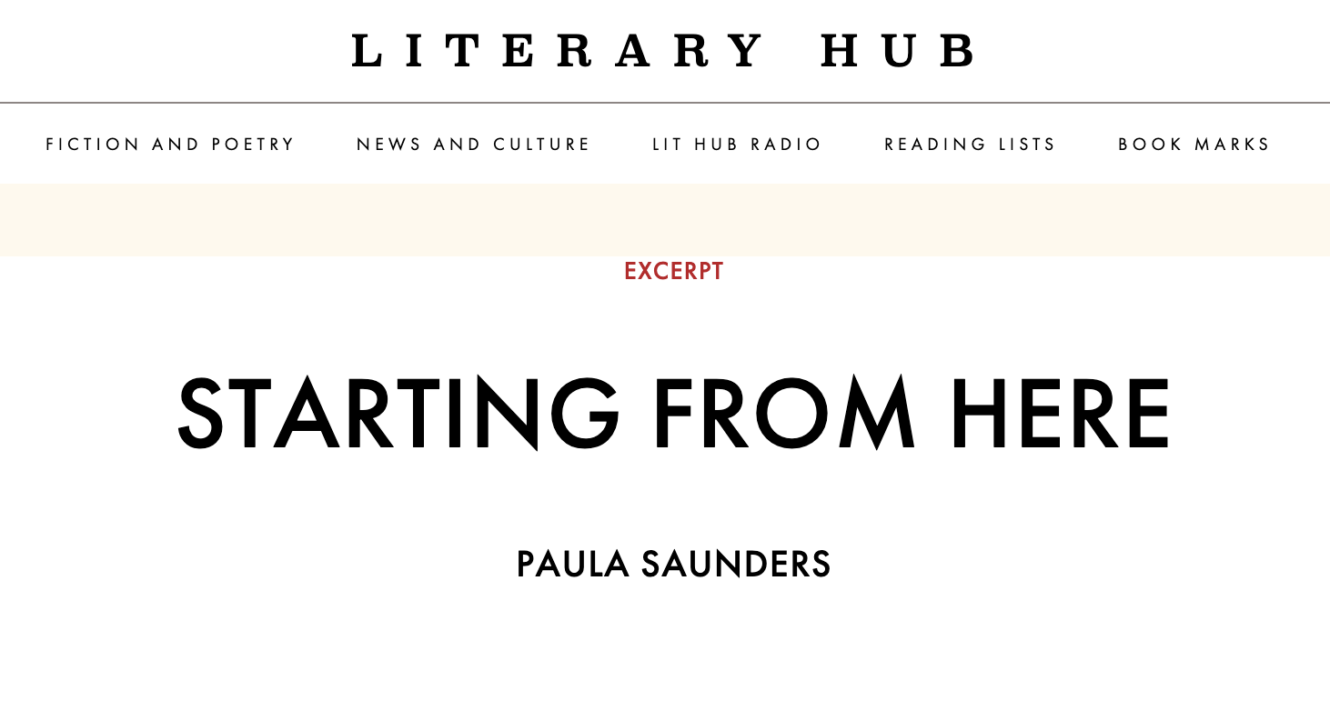 “‘Starting From Here’ is a stirring, stunning novel about the desire for a certain kind of life and the quest to find it. Paula Saunders has written an ode to coming-of-age, independence, and transformation that is also an evocative time capsule brimming with memory and feeling. What a wonderful book this is.”