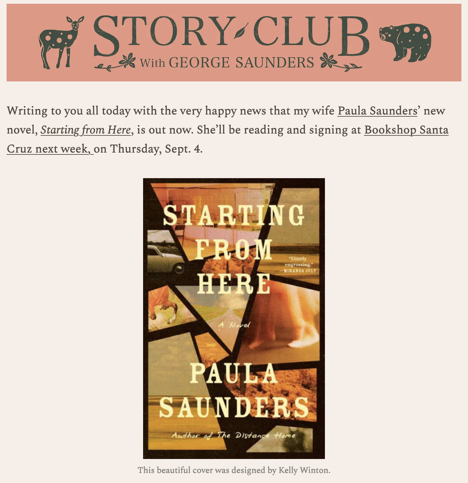 “Paula Saunders ‘Starting From Here’, follows René, the indelible protagonist of ‘The Distance Home,’ as she navigates family and dancing through her tumultuous 1970s adolescence. Saunders brilliantly captures the richness, awfulness, and blooming exhilaration of this girl’s life, careening from tortured family love to uneasy independence and back again. This is a beautiful novel.”
